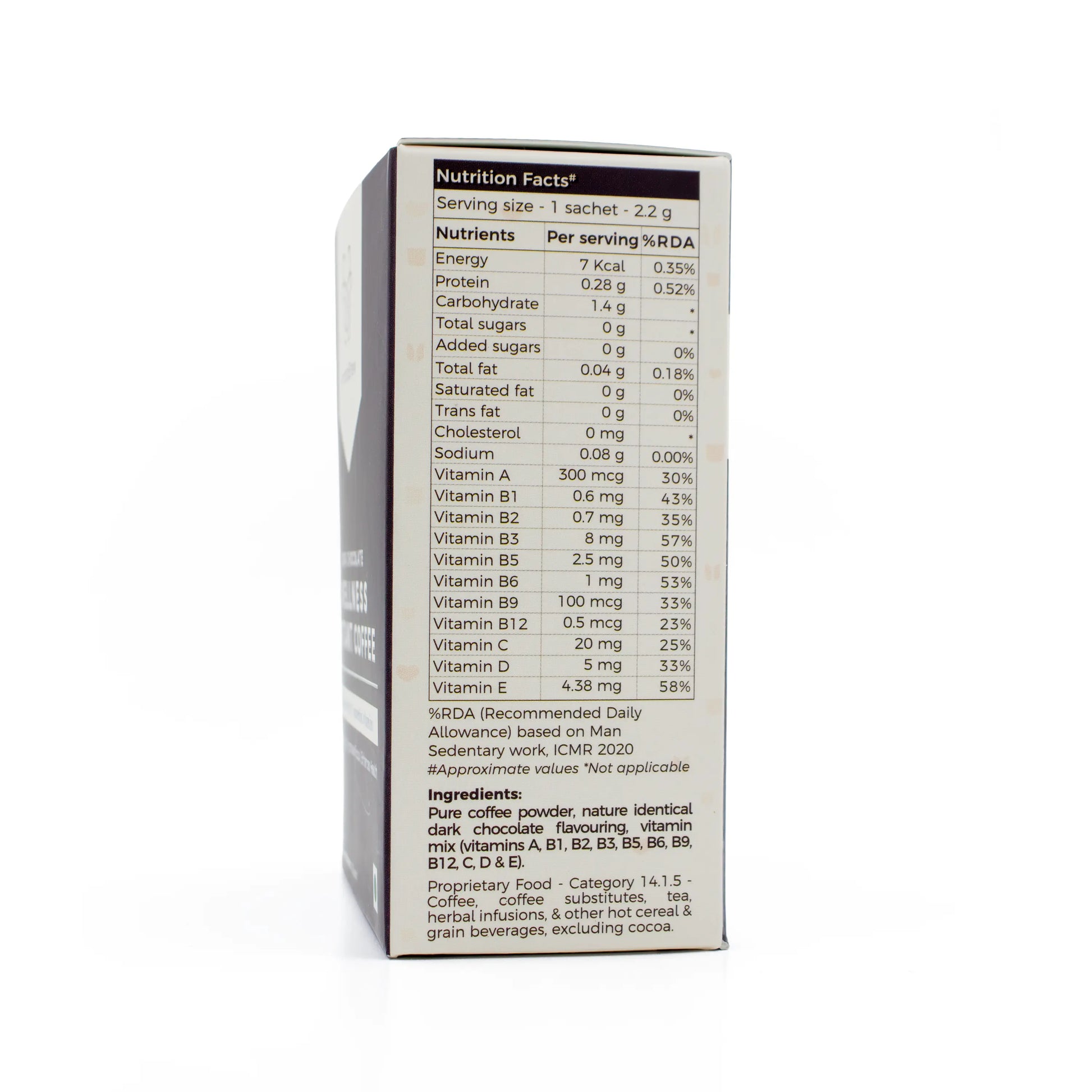 Pure Coffee Powder, Vitamins A, B1, B2, B3, B5, B6, B9, B12, C, D & E, Nature Identical Flavouring